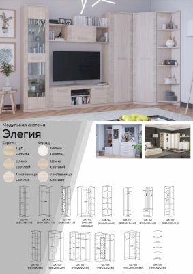 Модульная гостиная Элегия Лиственница светлая (PDM)